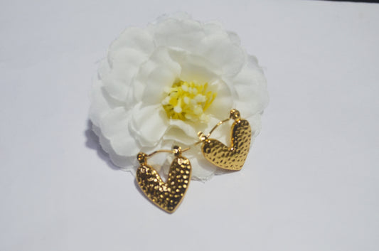Anti Tarnish Hammered Heart Huggie Hoop Earrings