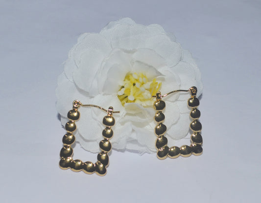 Anti Tarnish Geometric Design Beaded Square Hoop Earrings