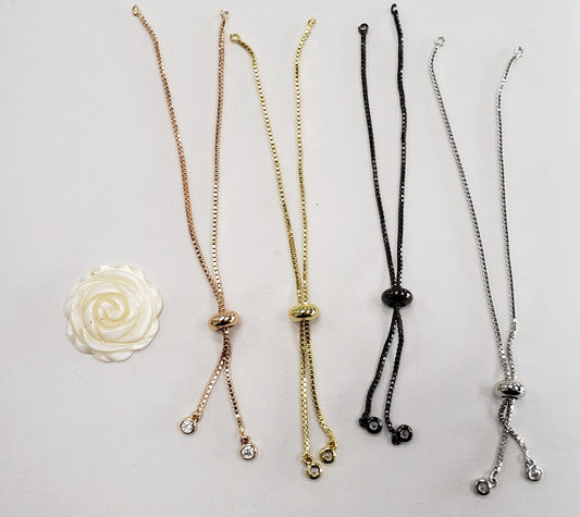 Silver, Gold Plated on Brass 1mm Box Adjustable Bracelets with Stopper Bead, 4 Pieces, Bulk Savings Available!!!