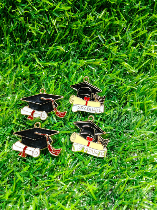 Pack of 5 Graduation Charms – Enamel Cap and Diploma Pendants for Jewelry Making & Crafts