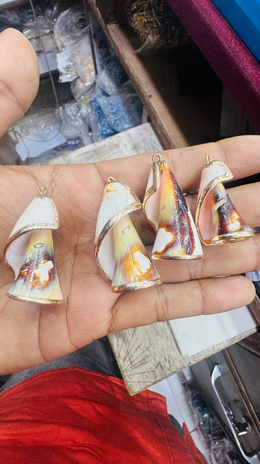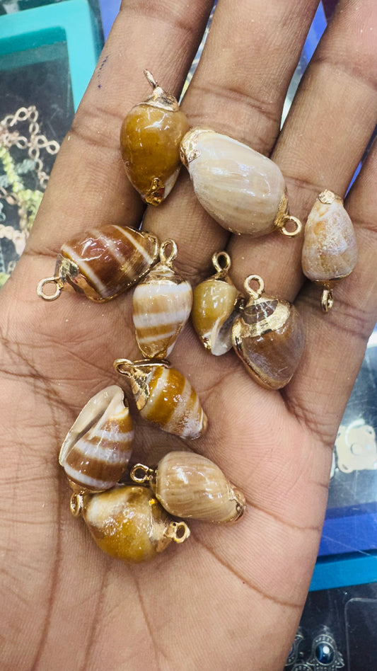 Gold brown Seashell, Natural Sea Shell Pendant, 50 MM