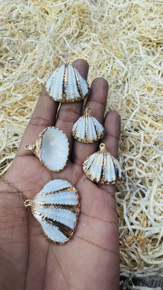 Gold Seashell, Natural Sea Shell Pendant Size 35 MM