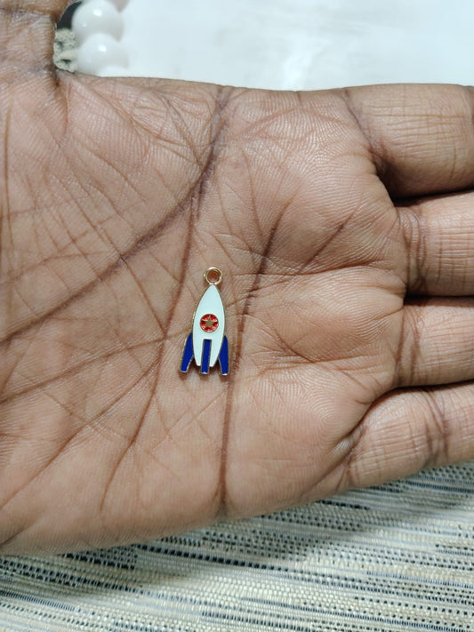 NAGNESHI Space Rocket Enamel Charms – White & Blue Galaxy Pendants – Gold Plated DIY Charms for Necklace Making, Earrings, and Personalized Keychains