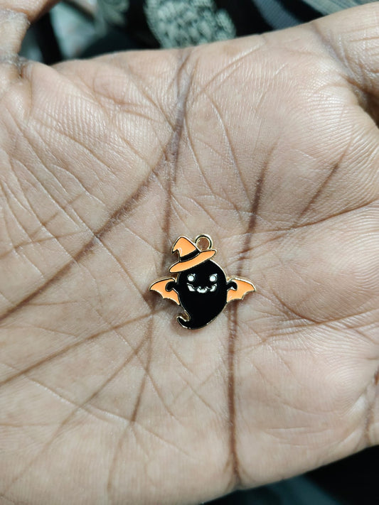 NAGNESHI Halloween Ghost Bat Enamel Charms – Cute Spooky Spirit Pendants with Witch Hat & Orange Wings – Gold-Plated DIY Charms for Jewelry Making, Earrings, and Keychains