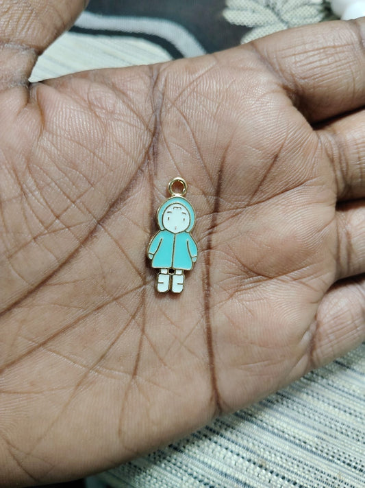 NAGNESHI Teal Raincoat Girl Enamel Charms - Cute Blue Hooded Character Pendants with Pink Boots for Jewelry Making, DIY Bracelets, Earrings, and Keychain Supplies - Gold-Tone Base