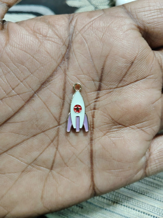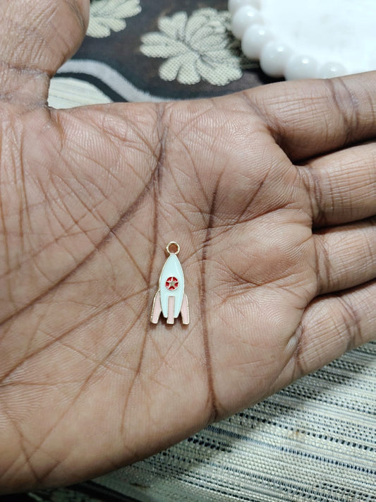 NAGNESHI Space Rocket Enamel Charms – White & Pink Galaxy Pendants – Gold Plated DIY Charms for Necklace Making, Earrings, and Personalized Keychains