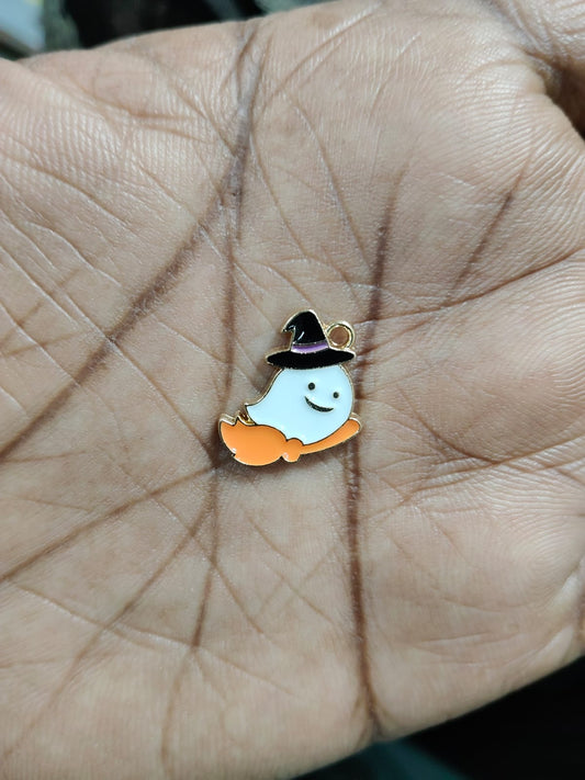NAGNESHI Halloween Ghost Enamel Charms – Cute Spooky Spirit on Broomstick with Witch Hat – Gold-Plated DIY Charms for Jewelry Making, Earrings, and Festive Crafts