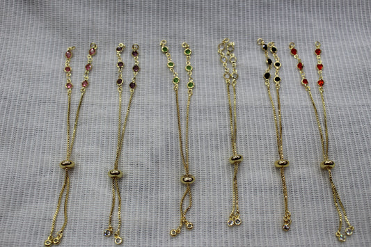 bracelate Silver, Gold Plated on Brass 1mm Box Adjustable Bracelets with Stopper Ad Stone