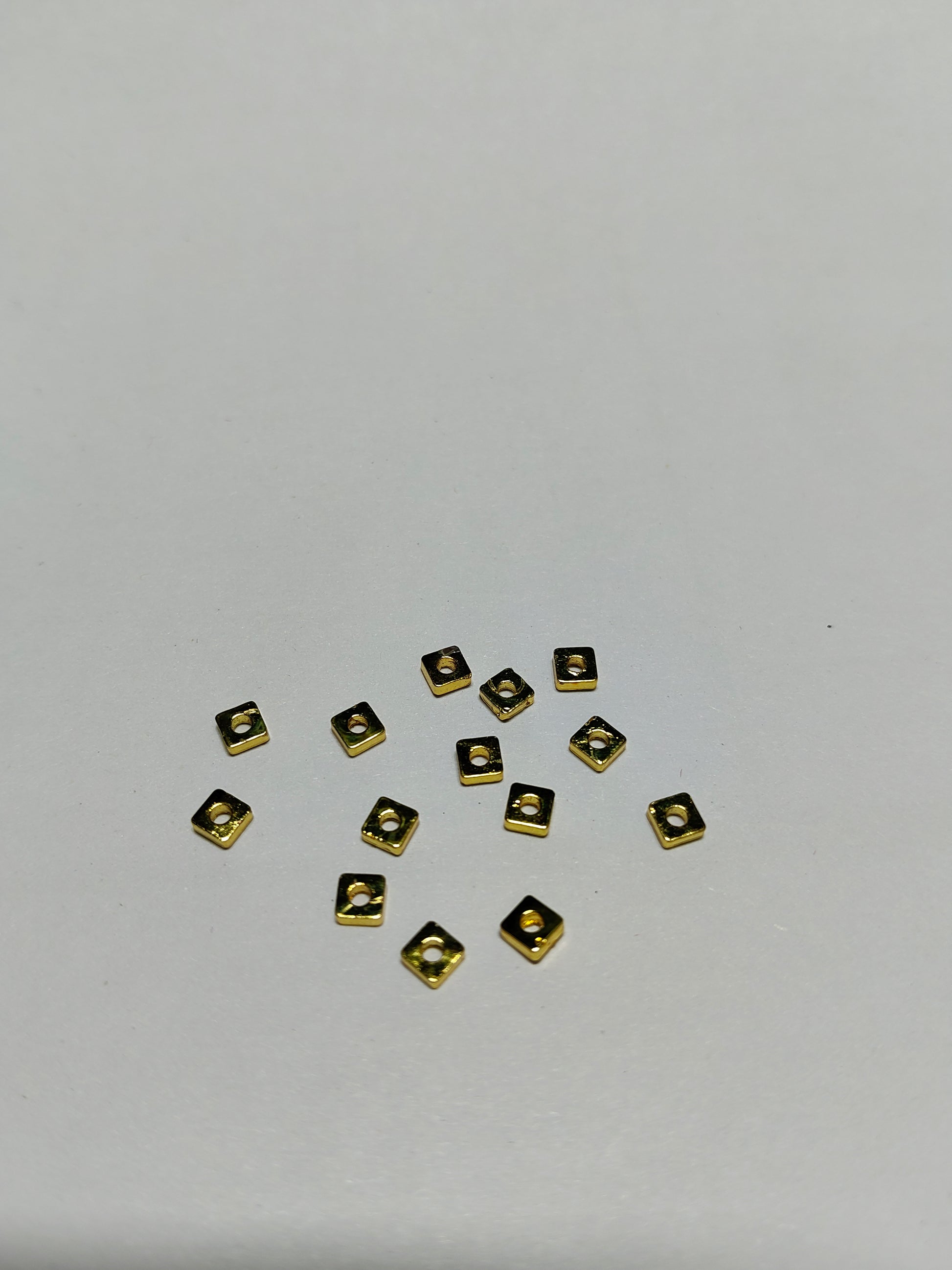 These tiny beads serve several purposes in jewelry design: Spacing: Their primary use is to be strung between larger beads or different components (like charms or gemstones) to add small gaps and visual separation. This prevents the main beads from rubbing against each other and allows them to stand out individually. Texture and Contrast: They provide a metallic, often uniform, contrast to round glass, stone, or polymer beads, adding texture and a more finished, geometric look. Accent: They can be used to create patterns within a beaded piece (e.g., alternating one large bead with two small square beads). Stringing Material: You would typically string these onto a flexible material like beading wire, elastic cord (for bracelets), or nylon thread (for bead weaving)