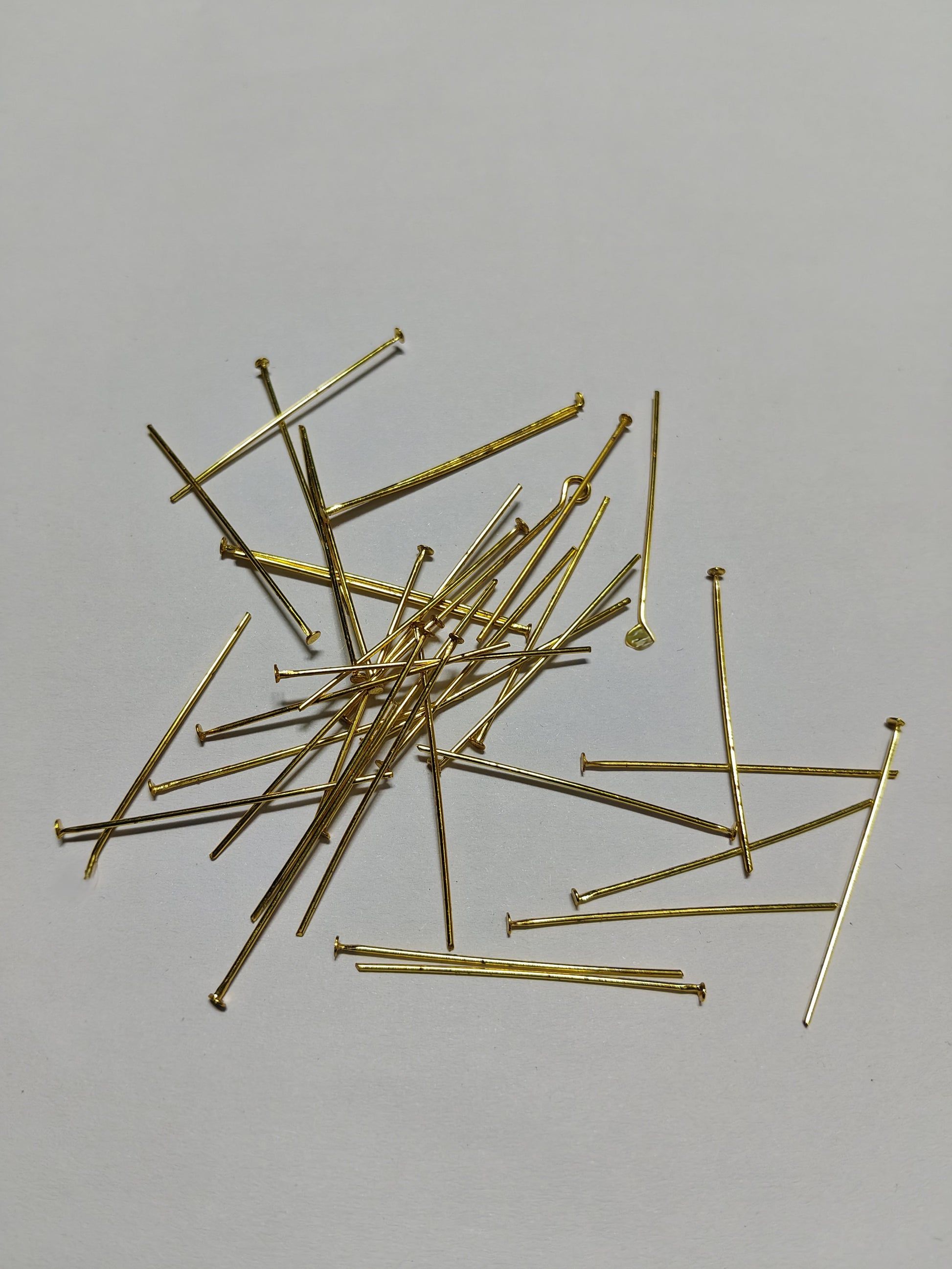 Secure your beads and components with this bulk pack of 100 premium anti-tarnish 18K Gold Plated Head Pins. Head pins are a fundamental finding in jewelry making, used primarily to create beautiful charms and dangles for earrings, bracelets, and necklaces. Key Features Quantity: Excellent value with a bulk pack of 100 pieces of high-quality head pins. Premium Plating: Features luxurious 18K Gold Plating for a rich, professional, and lasting golden sheen. Anti-Tarnish Formula: Specially treated to be anti-tarnish, ensuring your handcrafted pieces maintain their brilliance longer. Secure Foundation: The flat, subtle head at one end prevents beads and findings from slipping off, creating a secure base for your designs. Easy to Use: Simply thread your beads onto the pin, trim the excess wire, and use round-nose pliers to form a loop on the opposite end, ready to attach to ear wires, chains, or jump rings. Versatile Use: Perfect for creating beaded drops, crystal dangles, charm connectors, and small pendants.