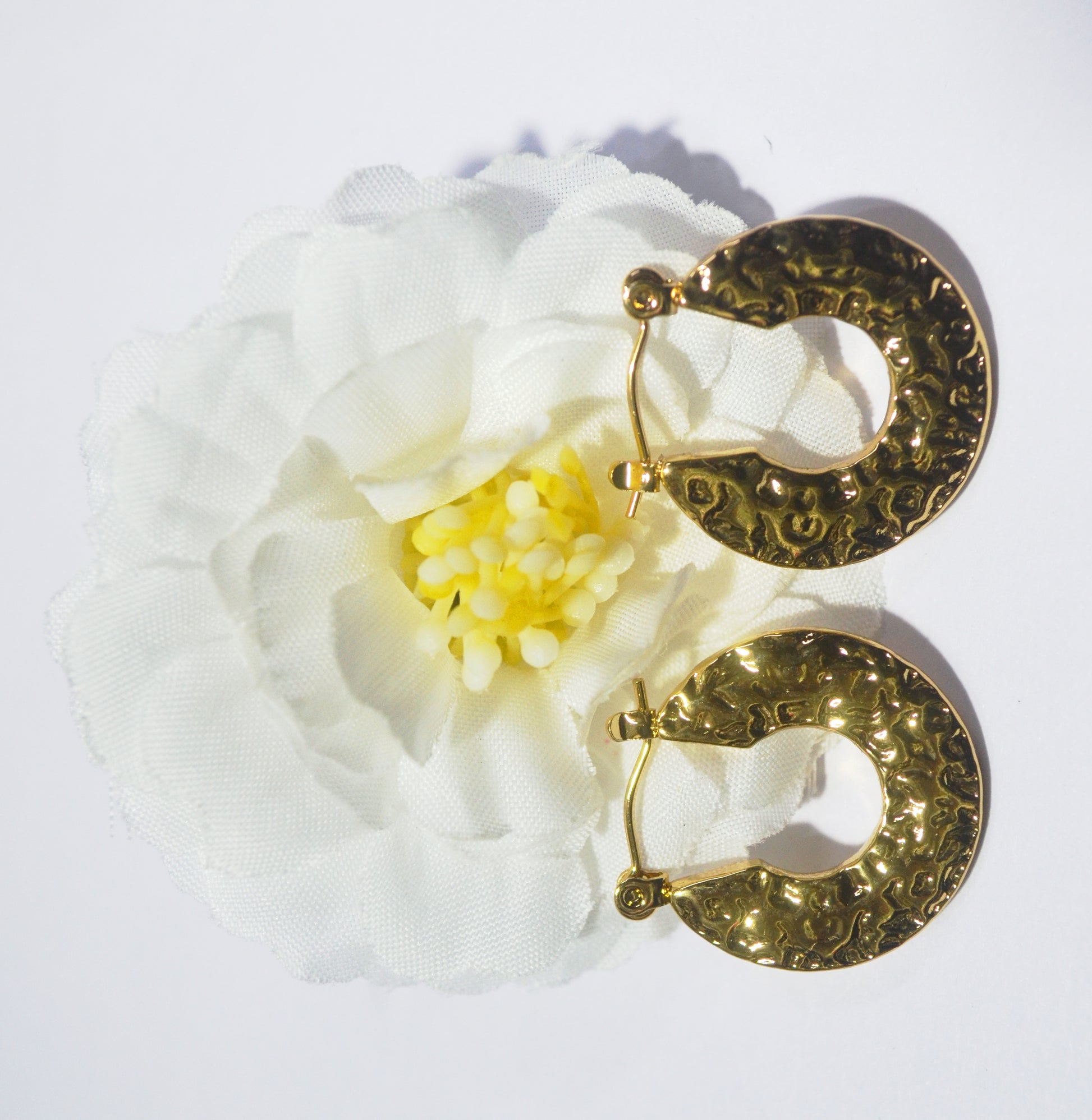 Anti Tarnish Vintage Hammered Texture C-Shape Hoop Earrings
