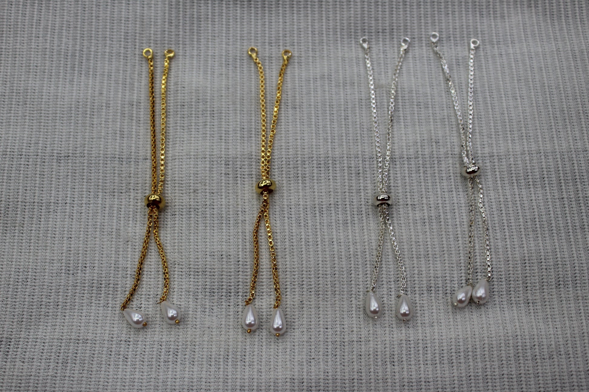 Gold Silver bracelet chain with white pearls silver Rakhi