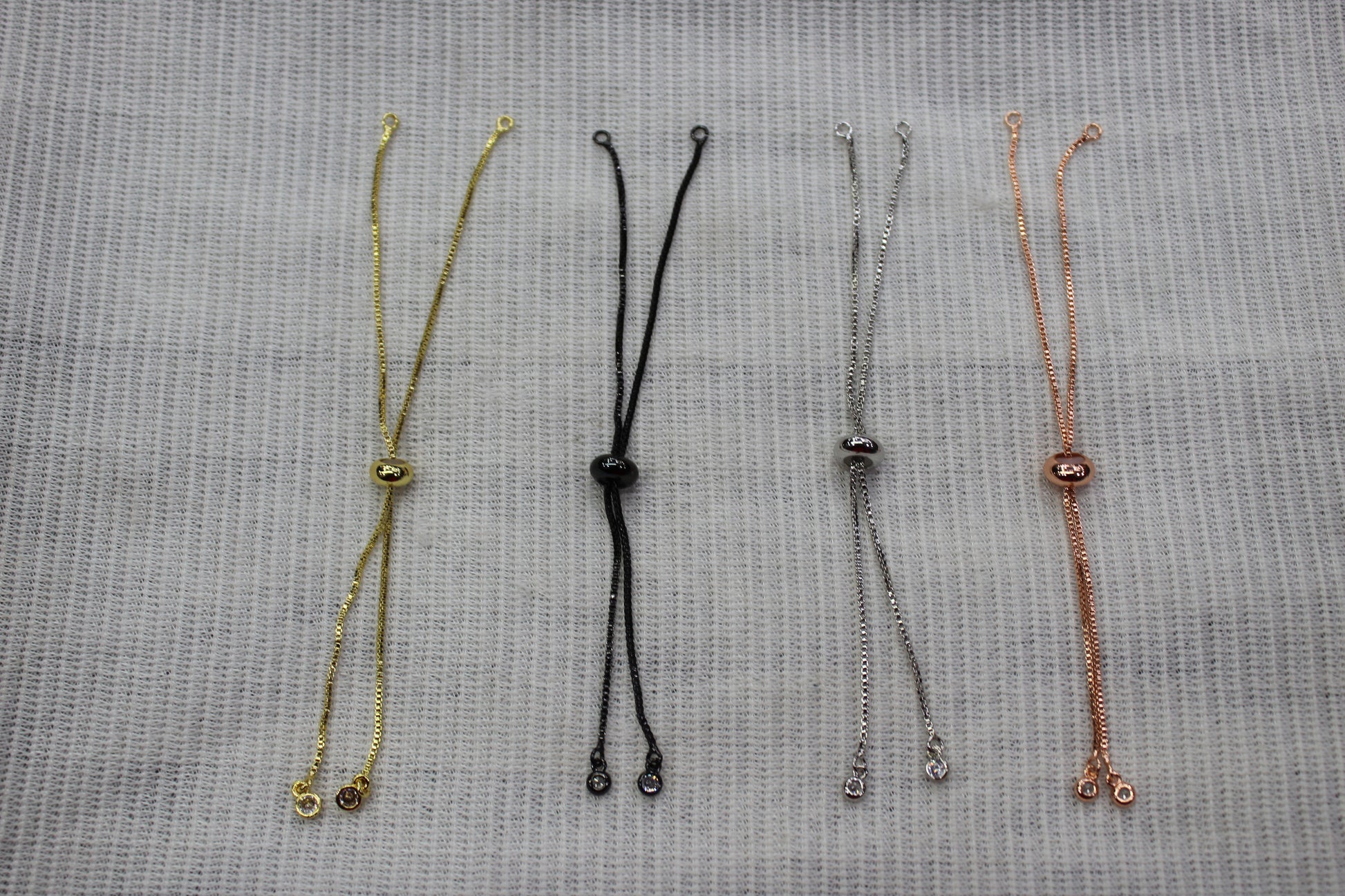 Silver, Gold Plated on Brass 1mm Box Adjustable Bracelets with Stopper Bead,