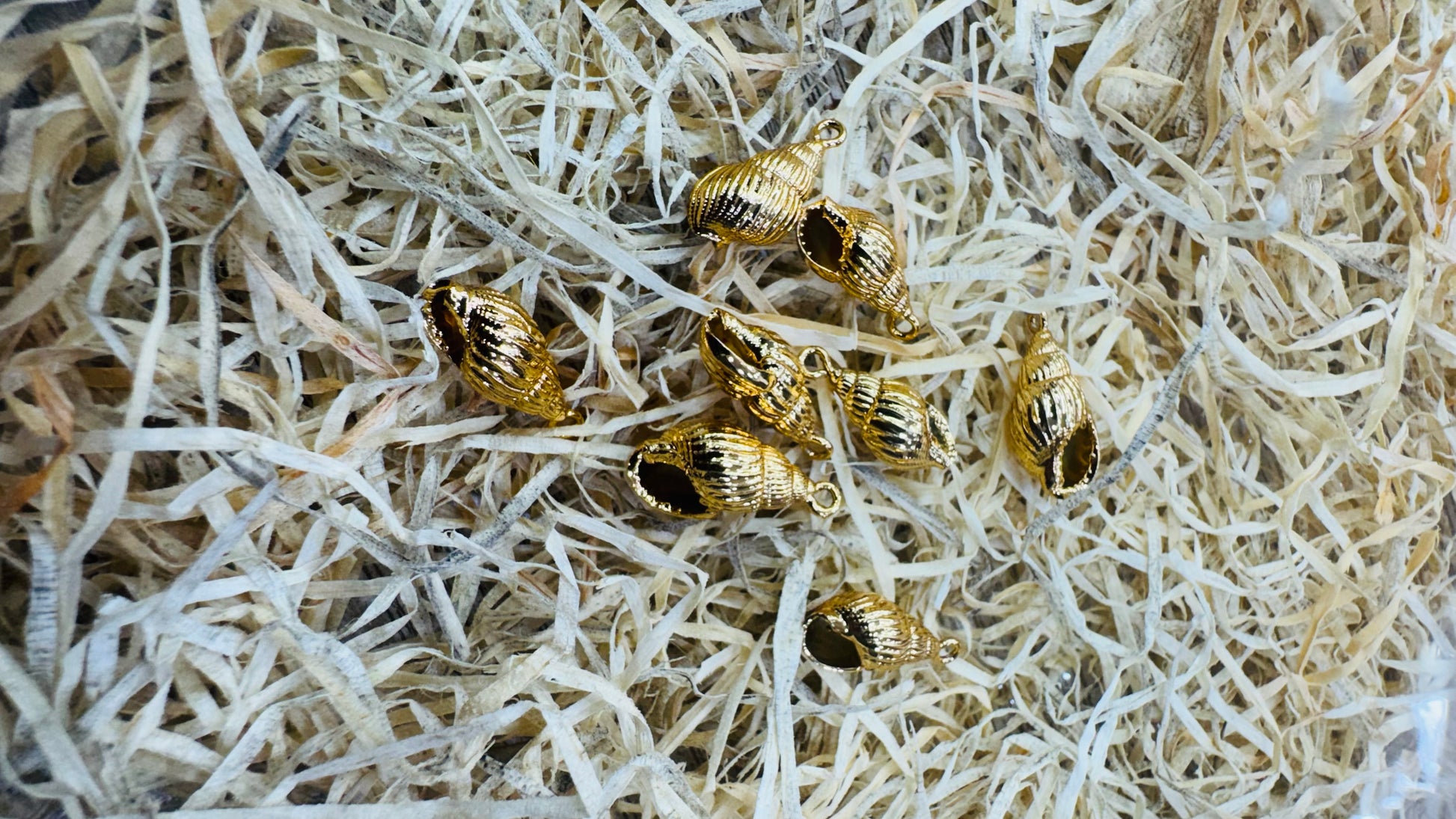 This Gold Seashell Pendant features a natural sea shell delicately coated in gold, combining organic beauty with refined craftsmanship. Its unique texture and warm metallic finish make it a versatile accessory, ideal for adding an elegant yet understated touch to any outfit. Perfectly suited for those seeking a sophisticated connection to nature, this pendant offers enduring style and authenticity.