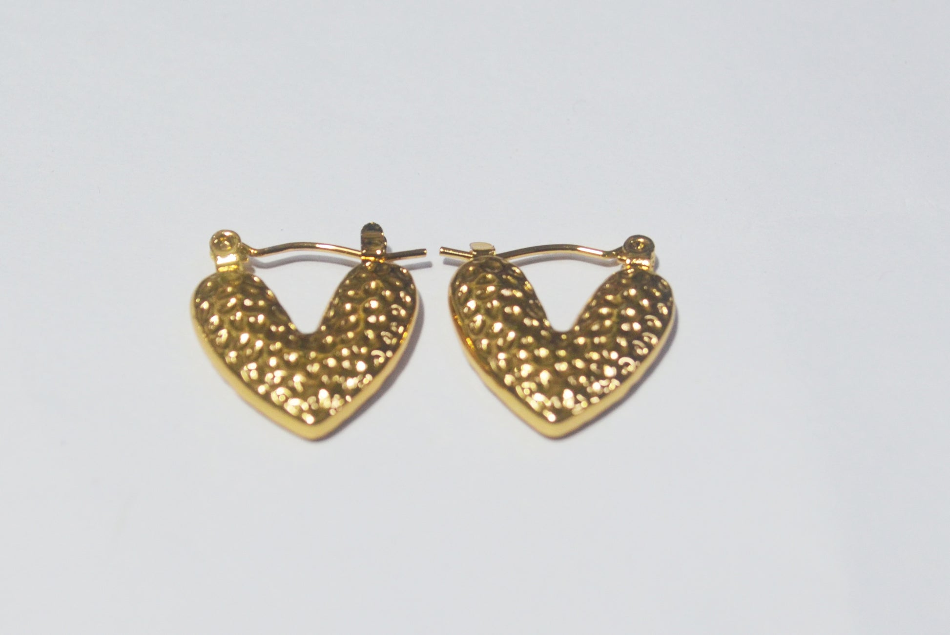 Anti Tarnish Hammered Heart Huggie Hoop Earrings